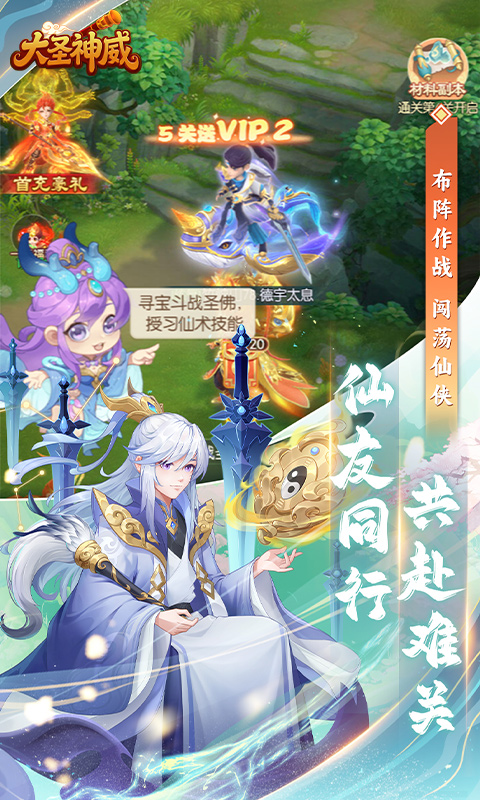 Q版放置回合仙侠,游戏主打宠物伙伴系统、不同的阵容搭配,可以让玩家体验不同的策略感觉。