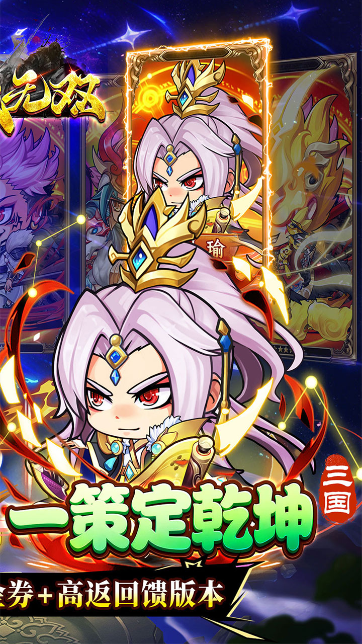执掌天命者,当立不世之功!《百战无双》是一款以三国为题材的放置卡牌策略游戏。玩家将化身三国主公,招募历史名将,通过策略布阵、武将养成和阵营搭配,体验热血征伐与智谋博弈。游戏融合了放置挂机、跨服竞技等多元玩法,搭配精致卡通画风与沉浸式战斗效果,重现三国巅峰时代的史诗对决。