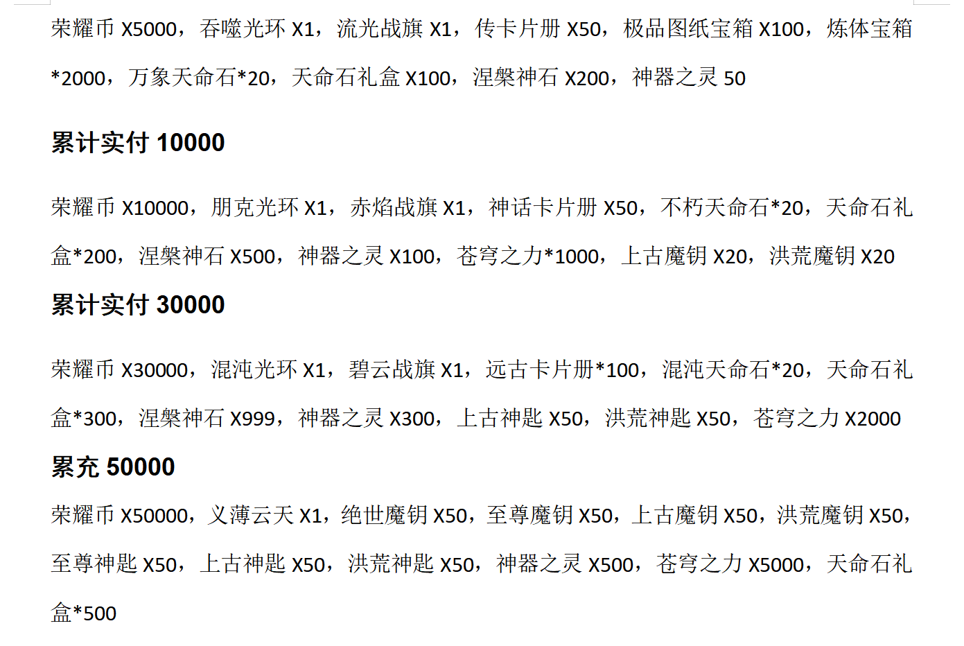 永久累计充值活动