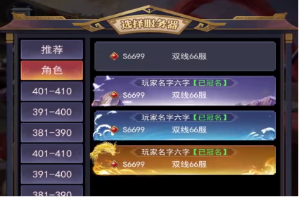 4、冠名特权: 被冠名的区服在选服列表中需特殊显示(设计参考原型图1)