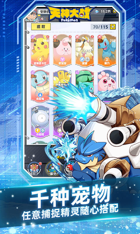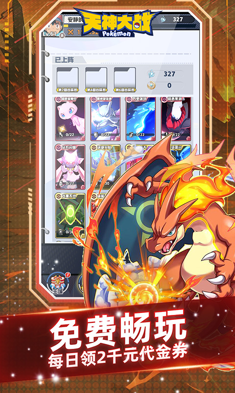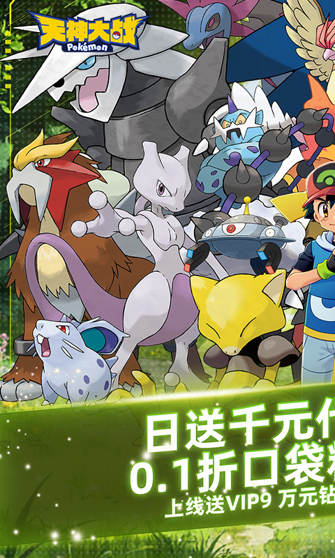 《天神大战(0.1折日送千元代金免费版)》集齐了宝可梦全体小精灵,上线即送VIP9特权、百抽精灵球、万元钻石,每日登录再领两千元直充代金券,直充海量钻石礼包。精灵球轻松捕捉全体神兽,全服限定结缘神兽风王。卡牌挂机解放双手,轻松躺赢,快来回味童年快乐!